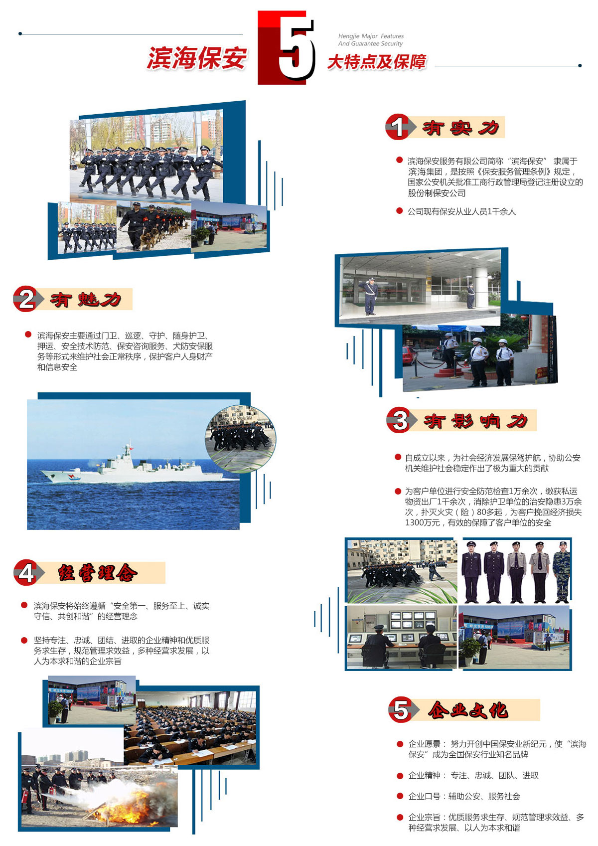 山東濱海保安服務(wù)有限公司簡(jiǎn)稱(chēng)“濱海保安” 隸屬于濱海集團(tuán),是按照《保安服務(wù)管理?xiàng)l例》規(guī)定,國(guó)家公安機(jī)關(guān)批準(zhǔn)工商行政管理局登記注冊(cè)設(shè)立的股份制保安公司。